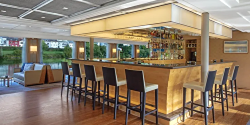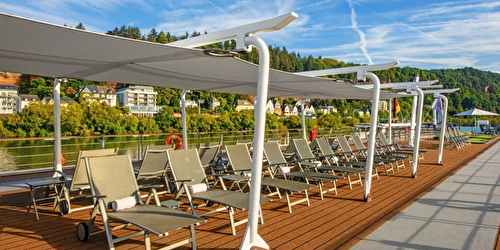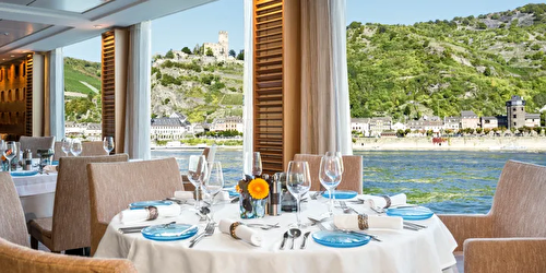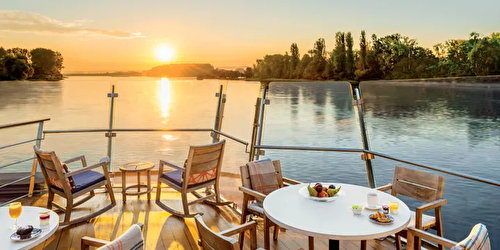 Suite size: 445 sq ft River-view suite with private wraparound balcony offering 270-degree views of ... f the spacious, separate sitting room & floor-to-ceiling sliding glass door, known as a French balcony, in the sleeping quarters Hotel-style bed 79 in x 63 in (with optional twin-bed configuration); luxury linens & pillows Free Wi-Fi (connection speed may vary) Two 40″ flat-screen Sony TVs with infotainment system featuring Movies On Demand, plus CNBC, CNN, FOX, National Geographic & more 110/220 volt outlets & USB ports Telephone, safe, refrigerator, hair dryer & individual climate control Large private bathroom with spacious glass-enclosed shower, heated bathroom floor & anti-fog mirror Premium Freyja toiletries; plush robes & slippers Bottled water replenished daily Stateroom steward & twice-daily housekeeping Space under bed for storing suitcases Roomy wardrobe with wooden hangers Early check-in (no later than 12 PM) Complimentary Silver Spirits beverage package, laundry service, room service (during breakfast) & shoe shine service Private airport transfers in Europe Welcome champagne; mini-bar with wine, beer & soft drinks (replenished daily); daily fruit plate Binoculars, coffee brewer & cashmere blanket